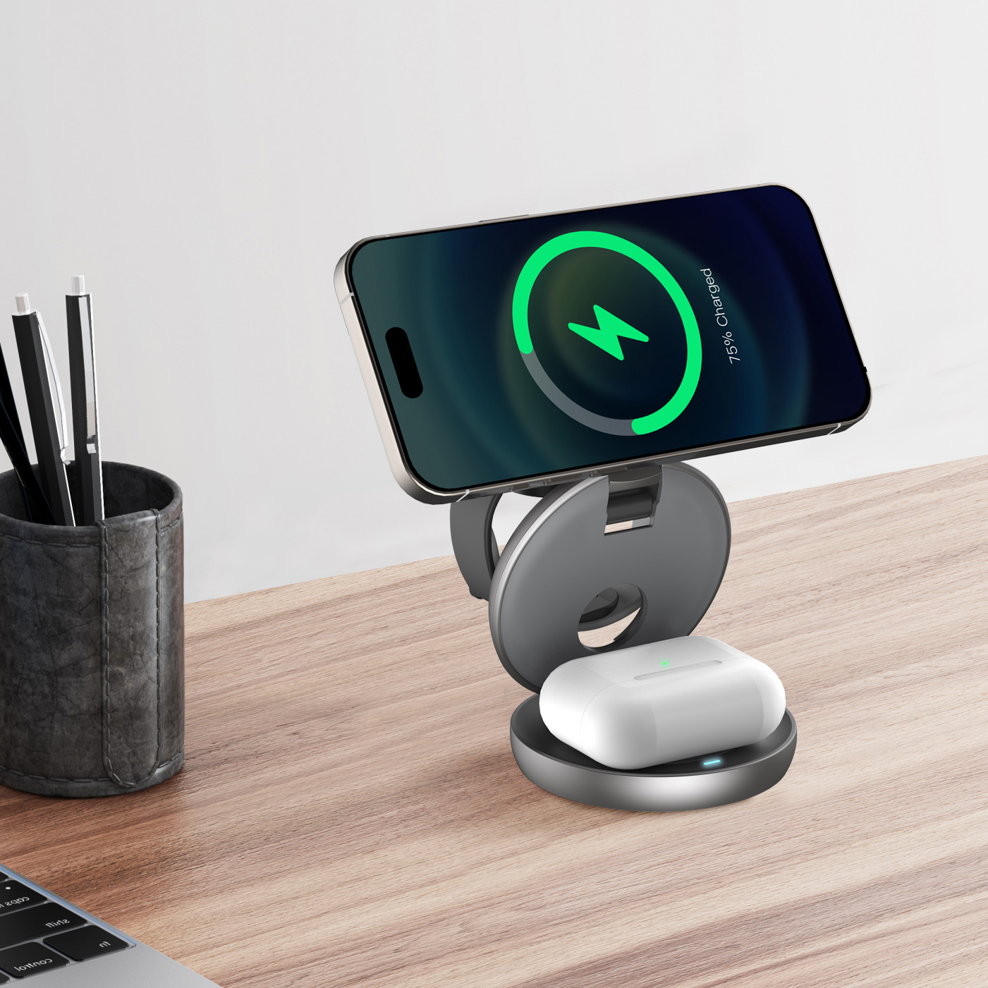 Qi2.2 certified magnetic charging delivers up to 25W wireless charging for iPhone, Multi functional all-in-one phones/watches/TWS can be charged