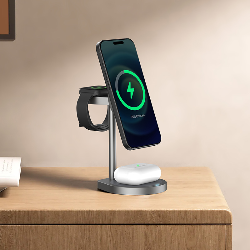 Qi2.2 certified magnetic charging delivers up to 25W wireless charging for iPhone, Multi functional all-in-one phones/watches/TWS can