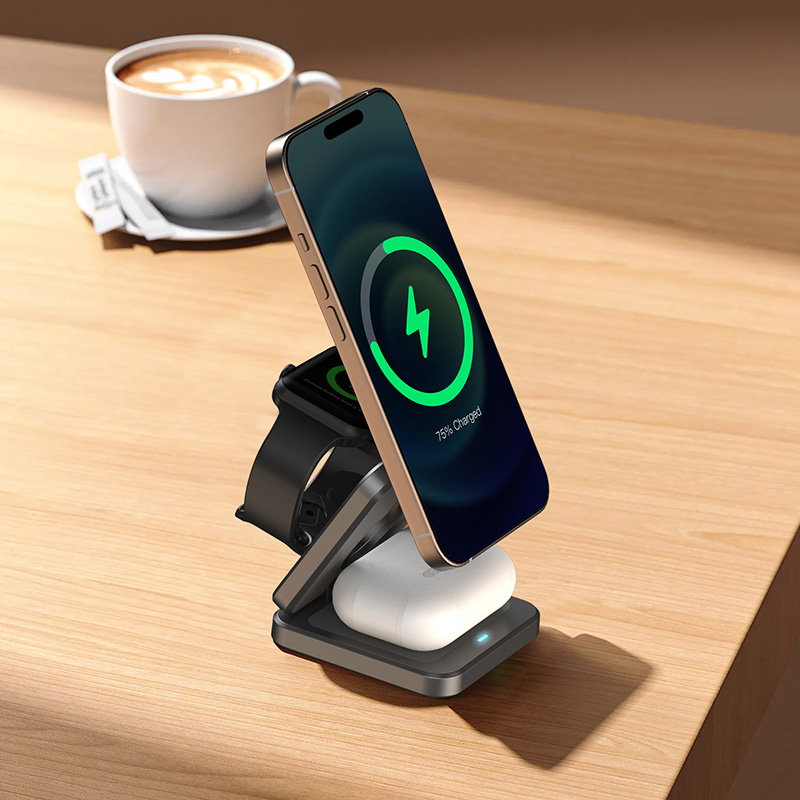 Qi2.2 certified magnetic charging delivers up to 25W wireless charging for iPhone, Multi functional all-in-one phones/watches/TWS can